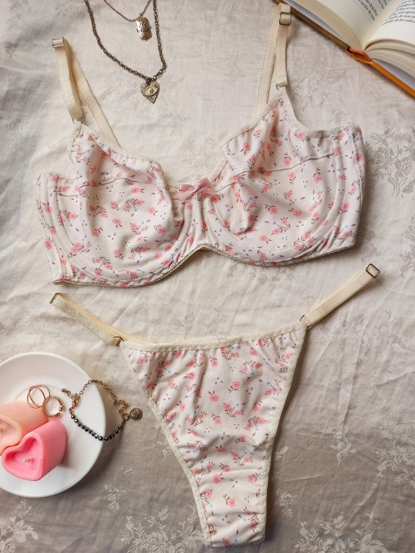 Corpiño con aro hecho en puntilla en la parte frontal y espalda, tazas forradas.