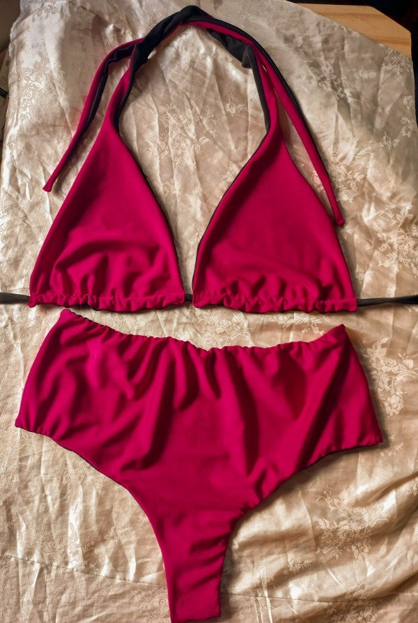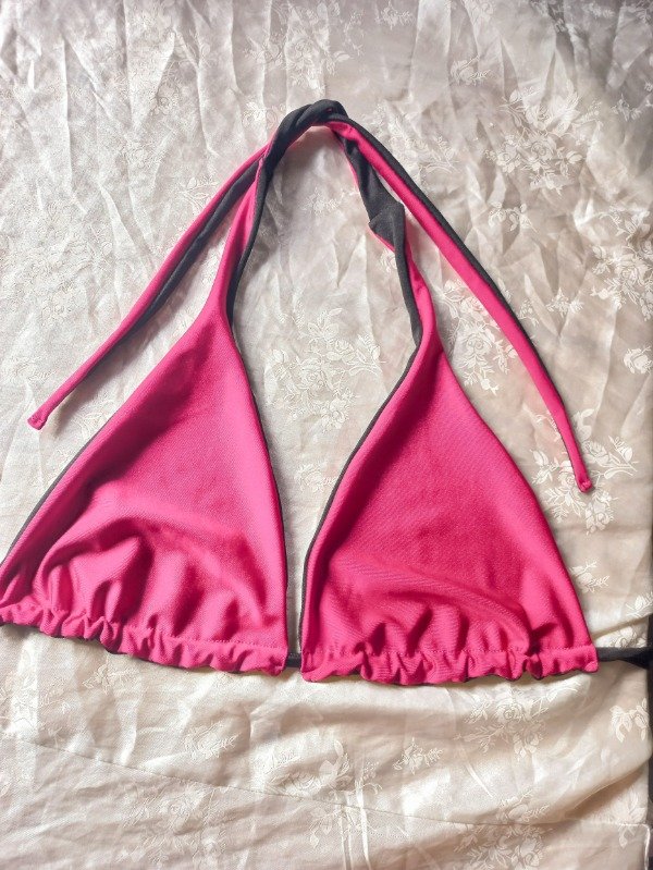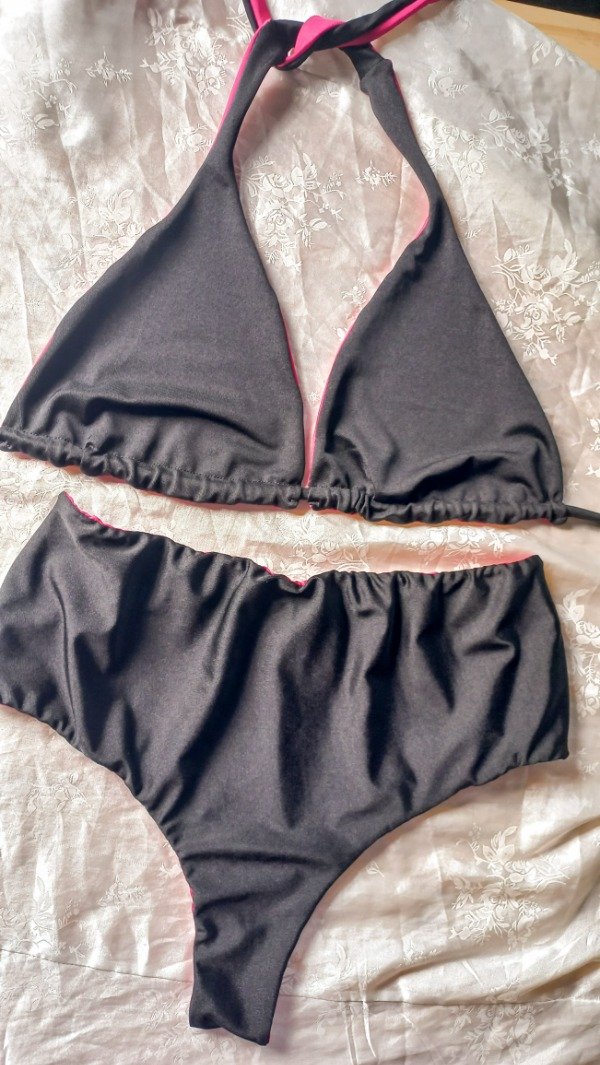 Bikini triangulito con bombi culotteless, reversible fucsia y negro